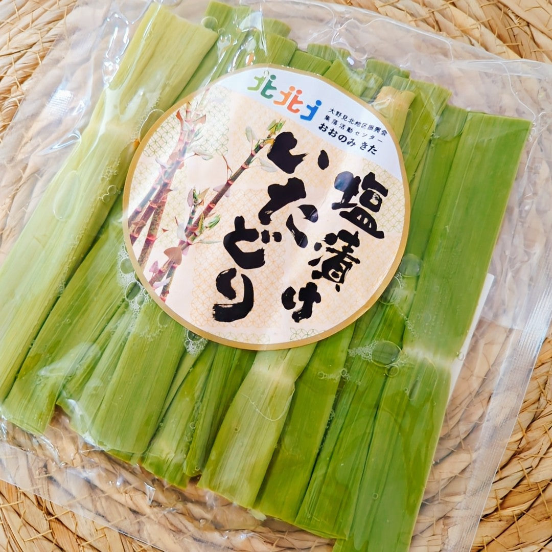 材料を用意します。今回は高知県高岡郡中土佐町のおおのみきたさんが生産している塩漬けいたどりで作ります!