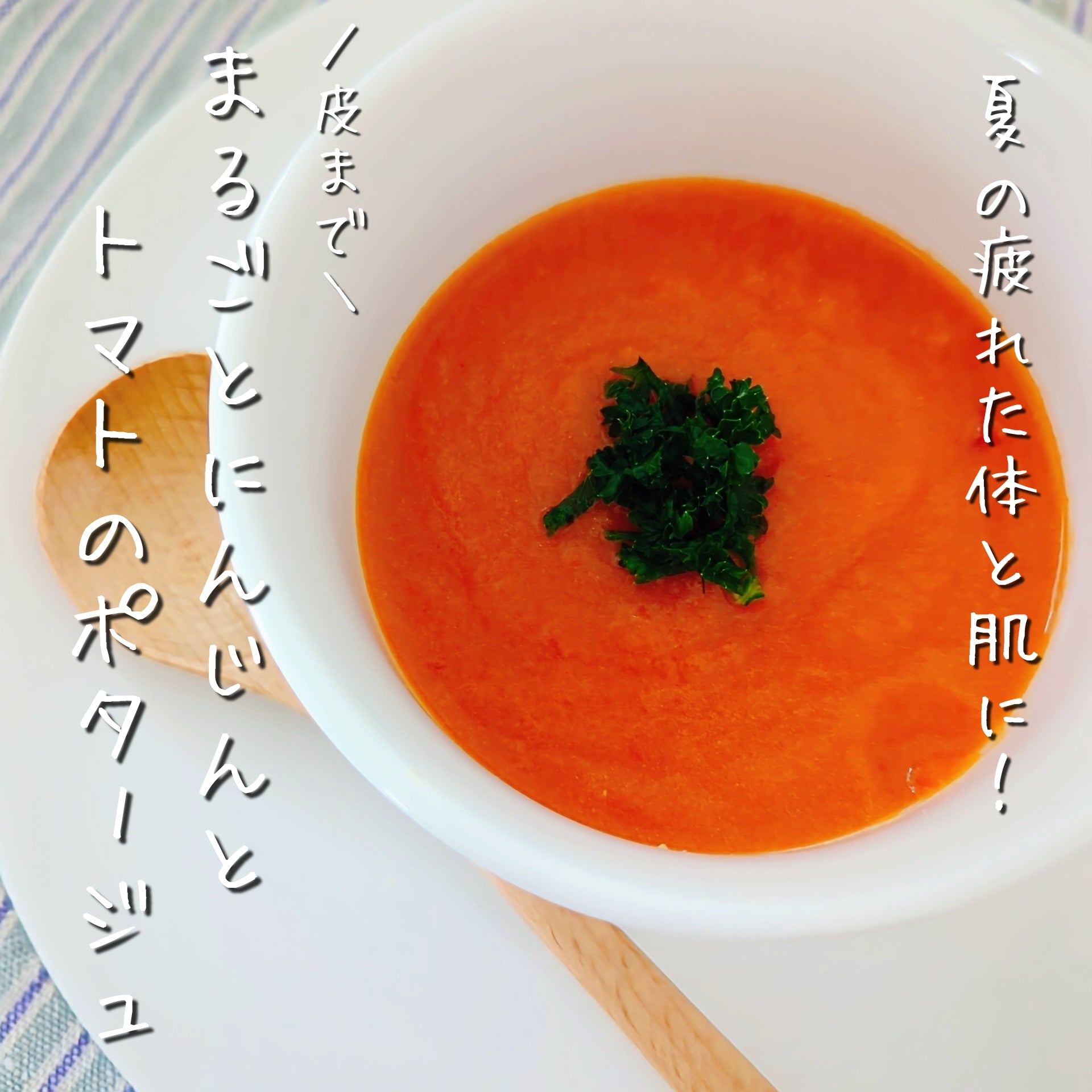 夏の暑さと日差しで疲れた体と肌に栄養補給!皮ごと食べる人参はビタミンCがたっぷりです。ポタージュは野菜の栄養を丸ごと食べれちゃうので疲れた体にもってこいです!トマトの旨味、人参の甘さが色んな料理にもアレンジできるポタージュです♪
