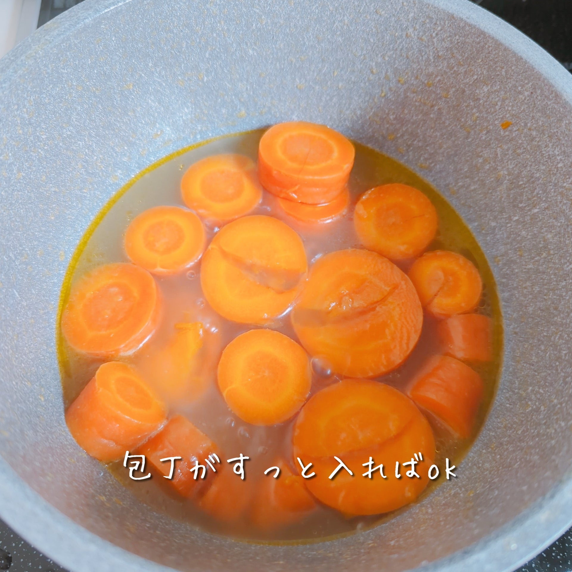 人参がかぶるくらいのお水を入れて10分茹でます。