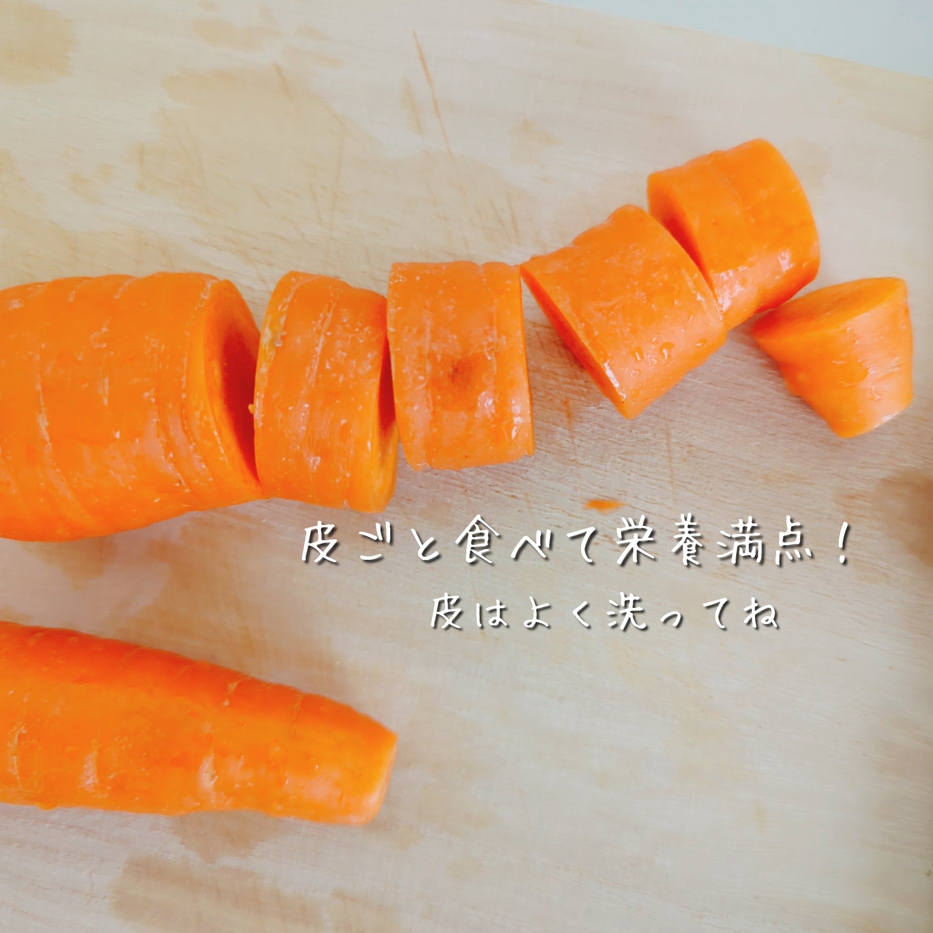 人参は皮ごとつかうのでよく洗って、傷んでいるところは切り取ります。